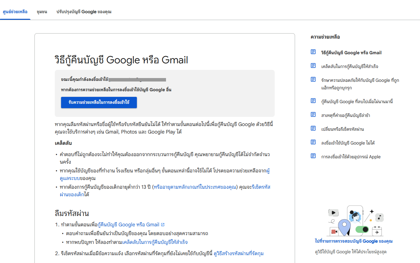 คุณสามารถตรวจสอบขั้นตอนการกู้คืนบัญชีหรือรีเซ็ตรหัสผ่านของ Google ได้ที่นี่