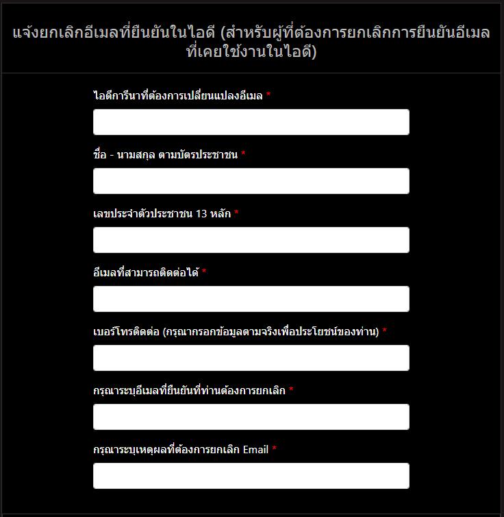 วิธีกรอกข้อมูล แจ้งเรื่องเปลี่ยนอีเมลที่ยืนยันในไอดี