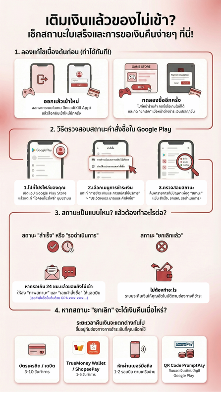 เติมเงินผ่าน Google Play | Apple Store แล้วไม่ได้คูปองทำอย่างไร?