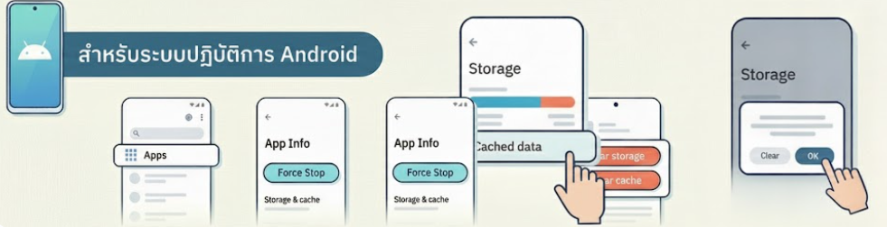 การเคลียร์ข้อมูล (Clear Data) หรือเคลียร์แคช (Clear Cache) บนโทรศัพท์มือถือ สามารถช่วยแก้ปัญหาแอปพลิเคชันค้าง, ทำงานผิดปกติ หรือทำให้เครื่องทำงานช้าลงได้ โดยมีขั้นตอนดังนี้:
